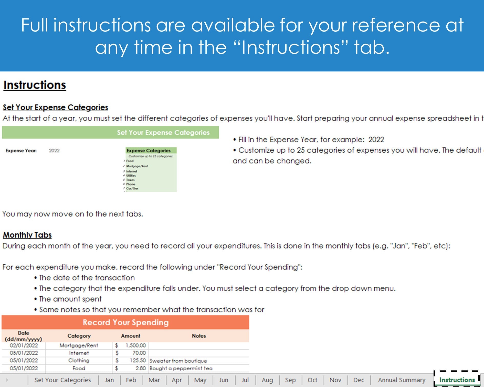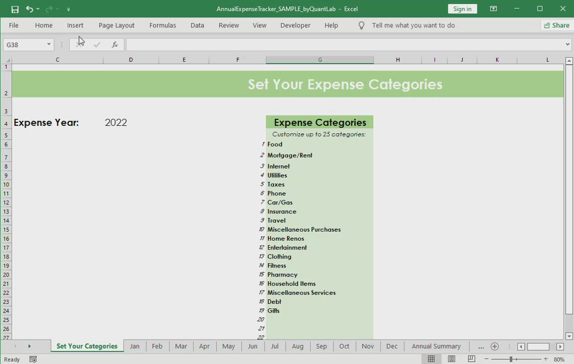 Annual Expense Tracker - Excel Spreadsheet