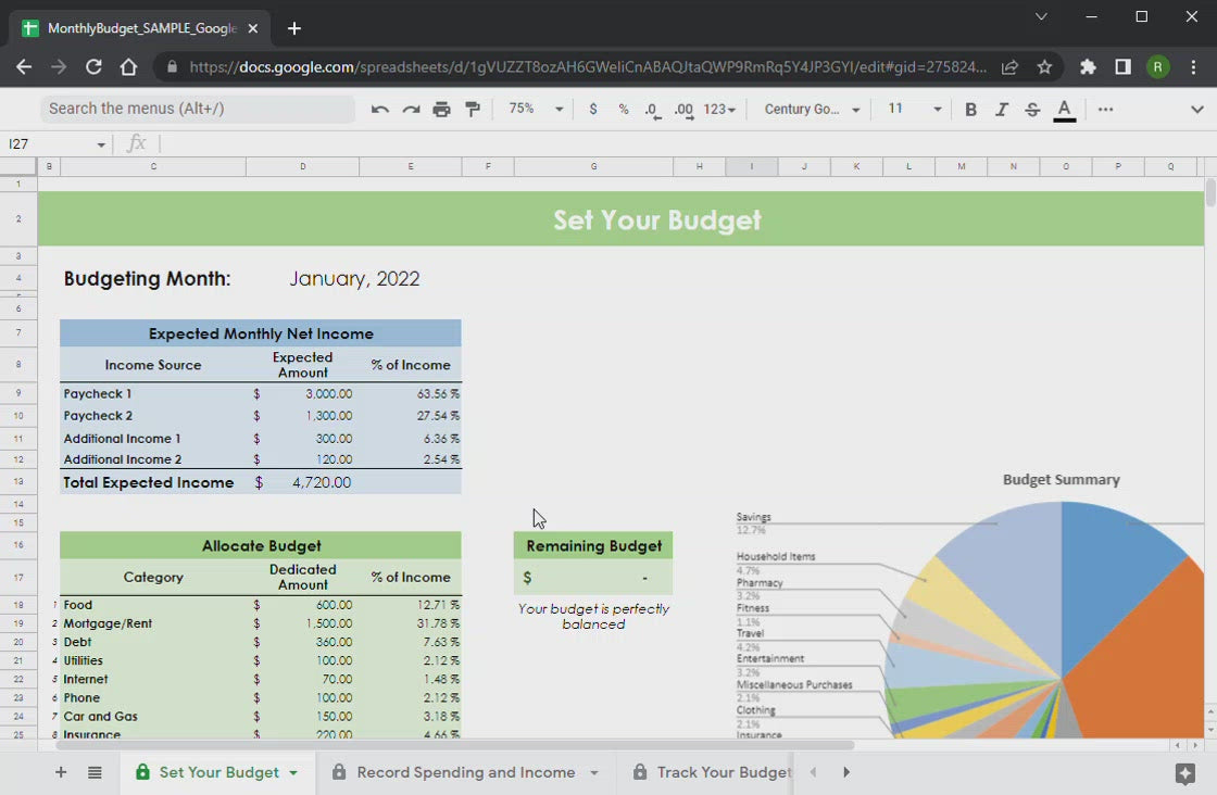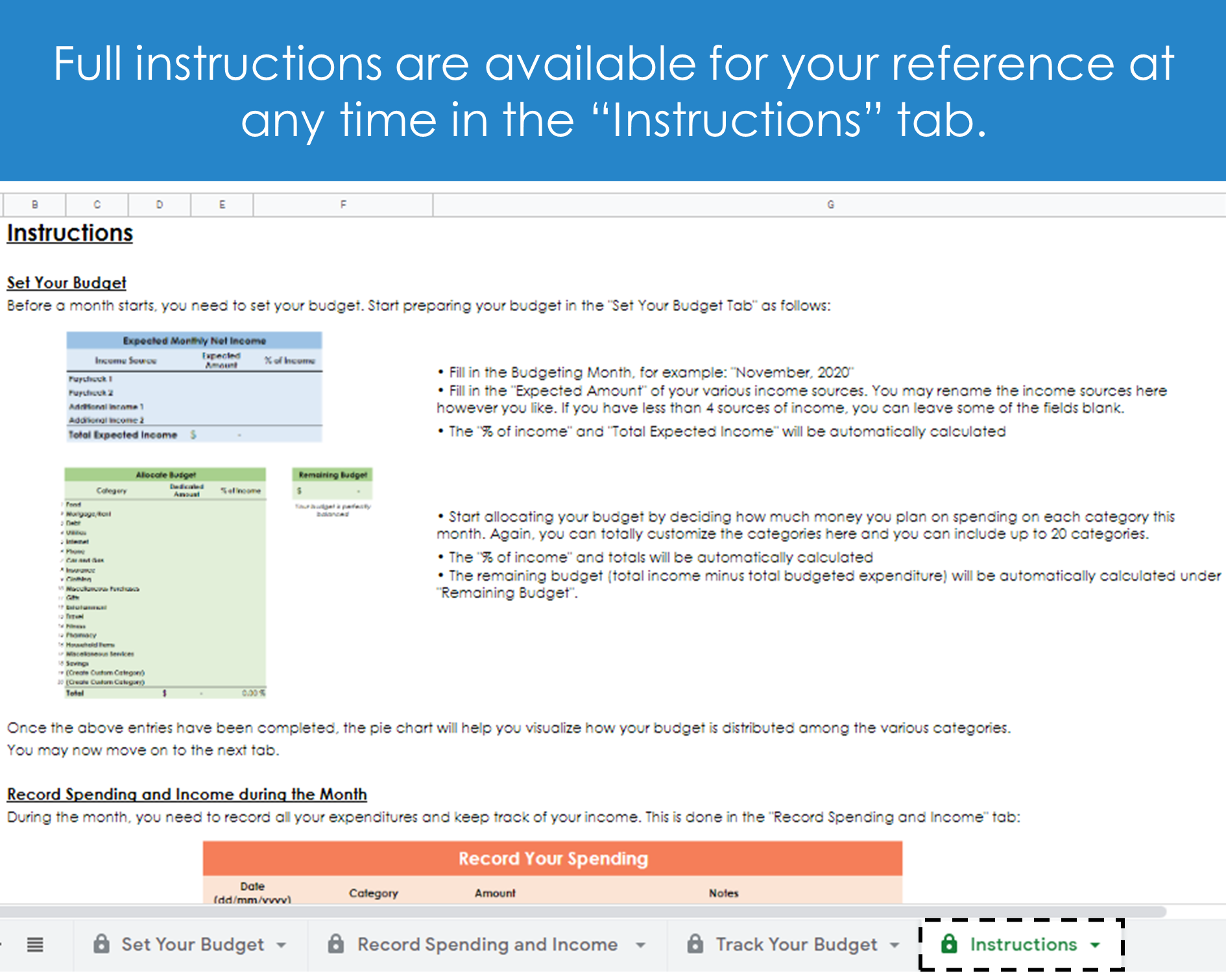 This is the perfect template to help you set a budget! Budgeting is the best way to manage your personal finances, as it will help you understand where you are spending your money, how your expenses balance with your income, and how you can make lifestyle changes and re-prioritize your expenses. Setting a budget is essential for families and households, young professionals, as well as college students, and this tool will make it easy to get started. This budget planner is very simple to use: