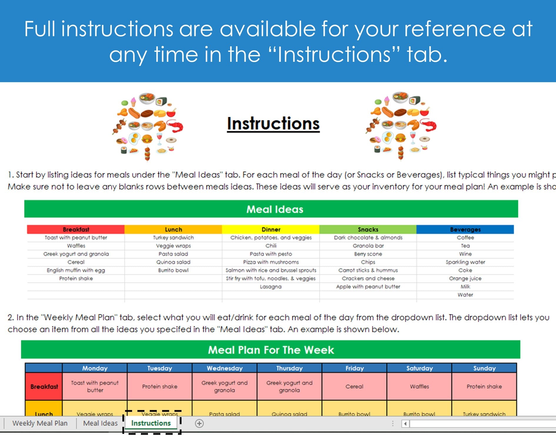 Weekly Meal Planner - Excel Spreadsheet